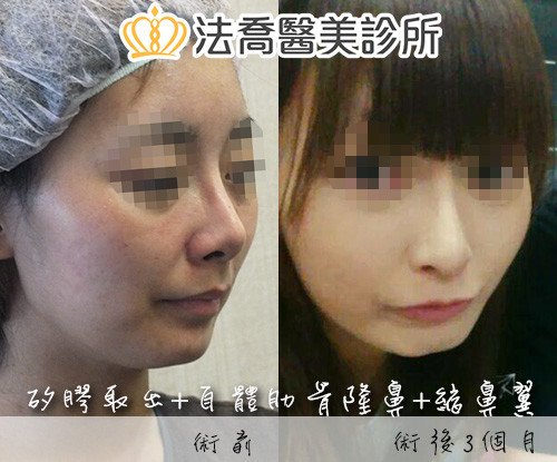- 鼻模偏斜 : 術後 1 個月內仍可用手調整,若固定後仍可經由手術調整。
