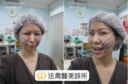 因為每個人的臉形與老態狀態都不相同,所以邱浚彥醫生會在臉部先做好塗鴨記號,