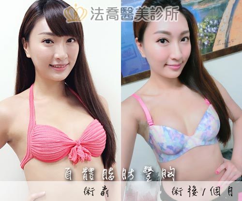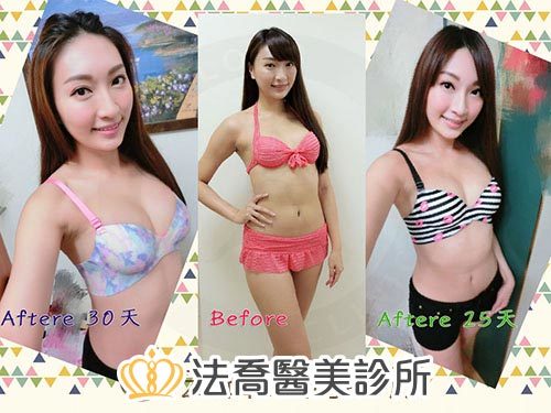 然後提醒大家一個觀念,抽脂豐胸並不會讓妳變成巨乳+骨感名模,它只能雕塑身型唷,例如剛補胸完大概可大1.5個cup,但脂肪會在三個月後穩定…一般都會留失3~5成,當然每個人狀況不一樣,如果沒有照顧好的話也是會消失一大半,等於白做了,所以術後照顧非常重要!
