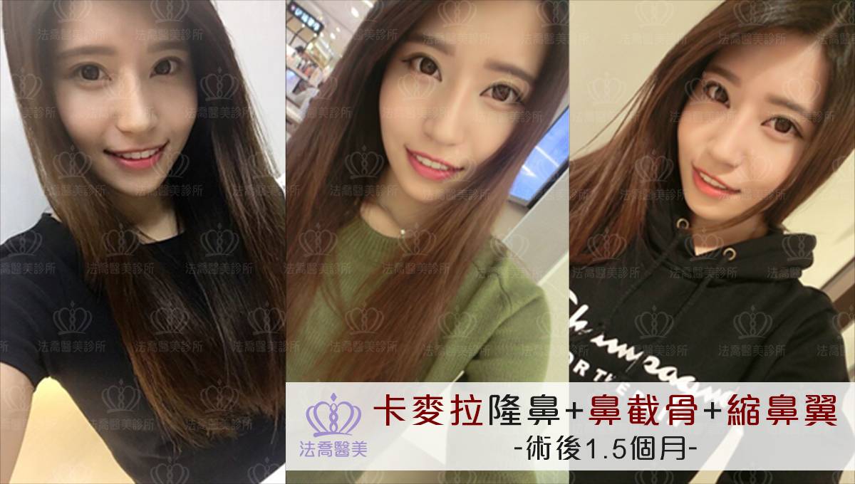 自從到法喬進行「卡麥拉隆鼻+鼻截骨」,不只鼻形挺了~感覺眼距也變近了,真的跟比目魚說掰掰了 ,再加上邱浚彥院長建議我加做「縮鼻翼」,讓整體感覺更精緻、秀氣,側臉線條也變得很順、很美,真的超滿意的!!