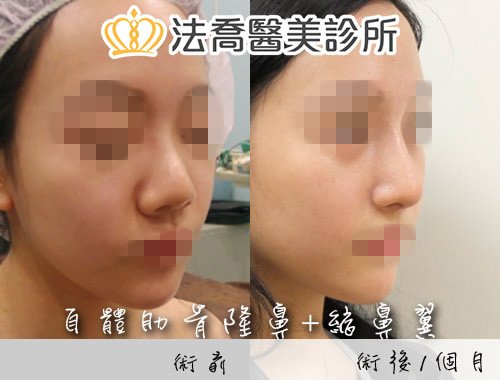 - 鼻模偏斜 : 術後 1 個月內仍可用手調整,若固定後仍可經由手術調整。