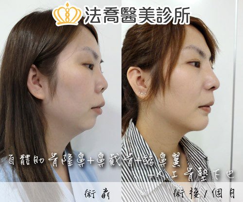 - 鼻模偏斜 : 術後 1 個月內仍可用手調整,若固定後仍可經由手術調整。
