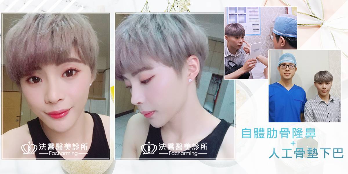 最近聽到身旁的朋友推薦法喬的邱浚彥醫師,專業細心,學經歷也很豐富,於是就抱著期待的心去諮詢了。因為我希望做一次手術就能達到心中想要的效果,邱醫師建議做 自體肋骨隆鼻+人工骨墊下巴,幾乎不會感染且更不會有排斥問題