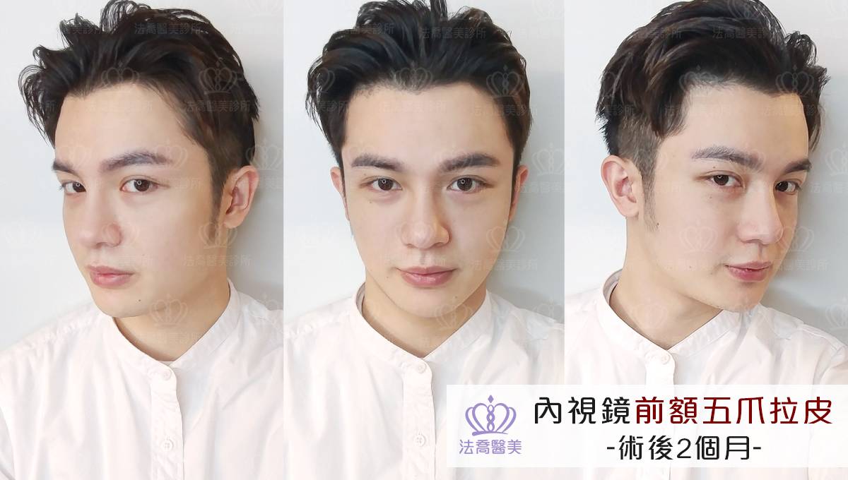 聽起來很複雜,但前額五爪拉皮是內視鏡手術,只在髮際線開個小小傷口,放進能自然吸收的五爪鉤拉提額頭、眉毛,臉上完全沒傷口,完全不用擔心傷口照顧與疤痕的問題,把原本蓋在瞳孔上方的眼皮撐提拉起來,調整雙眼大小眼,一次改善我苦惱已久的所有問題!