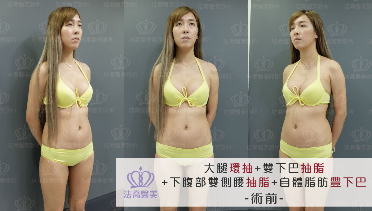抽脂案例《黛西》大腿環抽+雙下巴抽脂+下腹部雙側腰抽脂+自體脂肪豐下巴 - 法喬醫美診所(台北/台中/高雄)