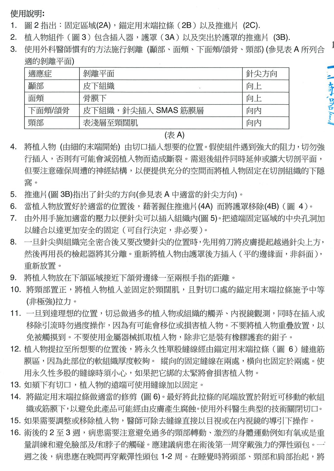- 手術切口會在前額髮際線後,耳前和耳後,或是請病人於術前與醫師討論附加的手術項目,如上下眼皮手術,抽脂肪及脂肪注射等。