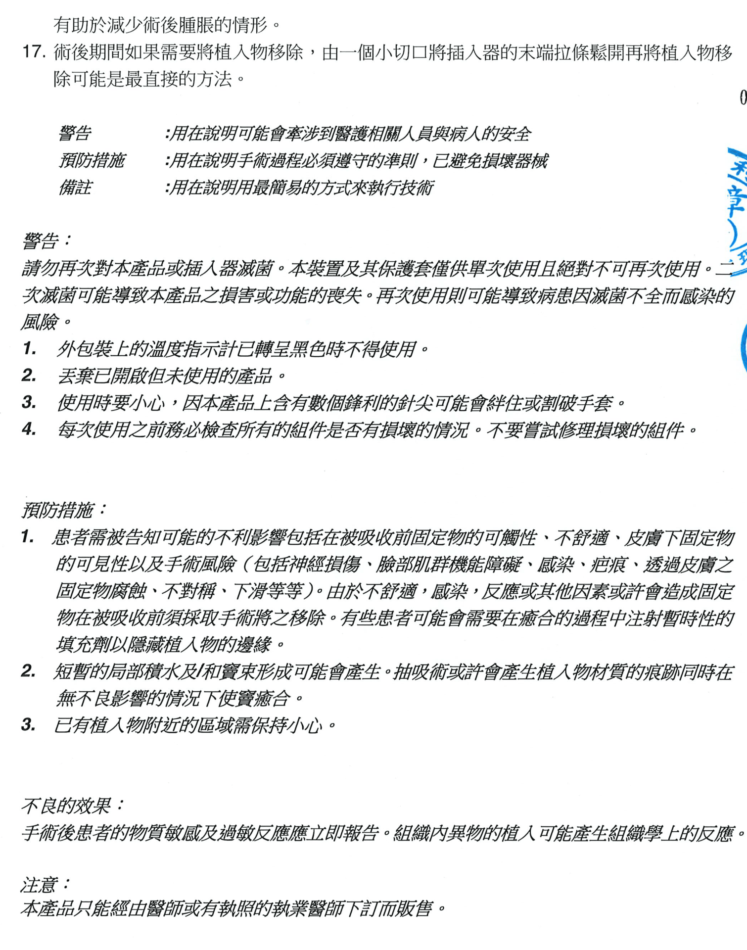 - 術後病患有可併發上呼吸道感染(機率約為 2%)或是肺炎(機率約為 1%)