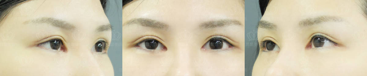 - 割雙眼皮併眼瞼肌提拉術後一個月可能會出現雙眼皮摺痕變淺或不明顯的情形,可於術後 3 個月再做上眼皮修皮手術。