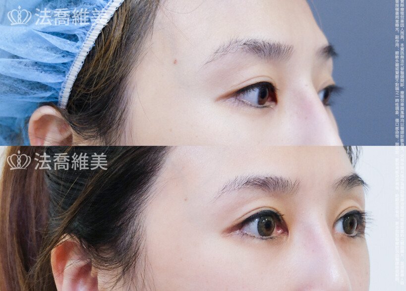 - 術後眼睛不自然 、 兩眼不對稱:術後可能因腫脹或疤痕問題,造成兩眼暫時性的不自然或不對稱,建議等 3至 6 個月,待疤痕軟化或完全消腫再做最後評估,通常雙眼不對稱需要進行二次修復的機率為 5%,人的器官多有天生性生理不對稱,加上大多是疤痕收縮造成。此為不可控制之因素,病患並無法要求雙眼 一定必須 100 %完全對稱 。
