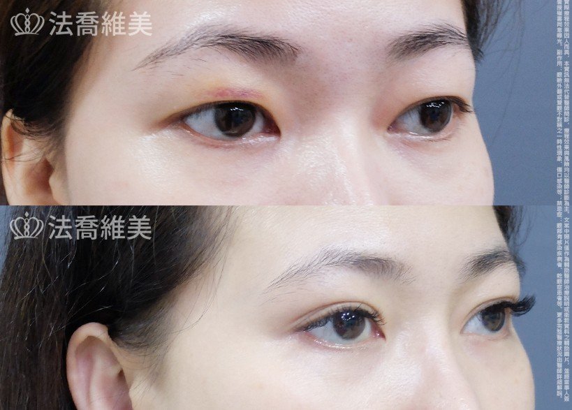 - 血腫:術後請勿低頭或用力做事, 以免血壓上升或眼瞼充血而引發血腫。