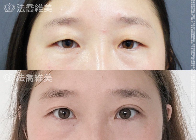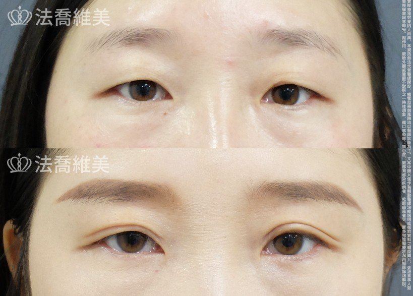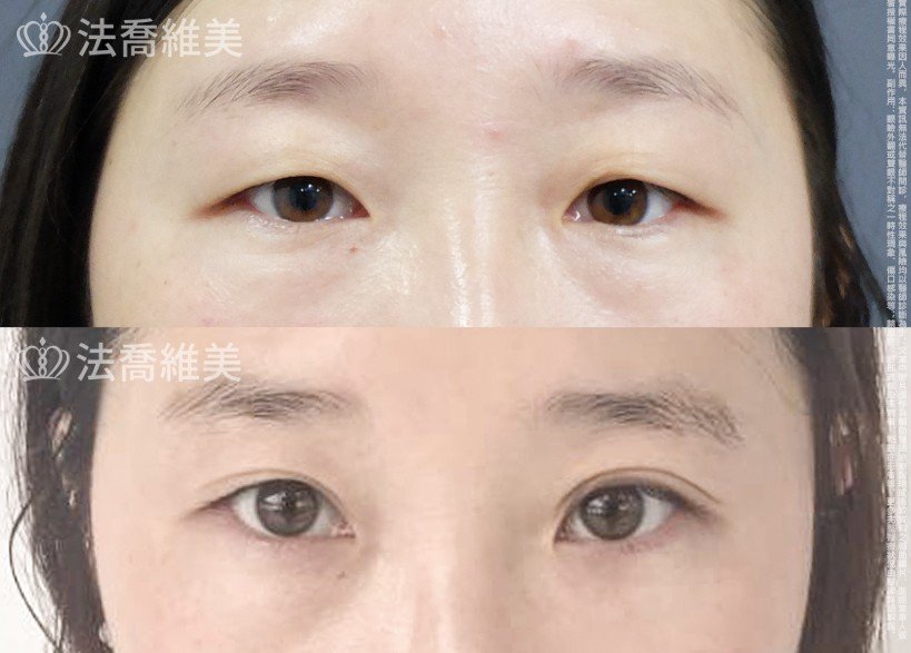 - 術後眼睛不自然 、 兩眼不對稱:術後可能因腫脹或疤痕問題,造成兩眼暫時性的不自然或不對稱,建議等 3至 6 個月,待疤痕軟化或完全消腫再做最後評估,通常雙眼不對稱需要進行二次修復的機率為 5%,人的器官多有天生性生理不對稱,加上大多是疤痕收縮造成。此為不可控制之因素,病患並無法要求雙眼 一定必須 100 %完全對稱 。