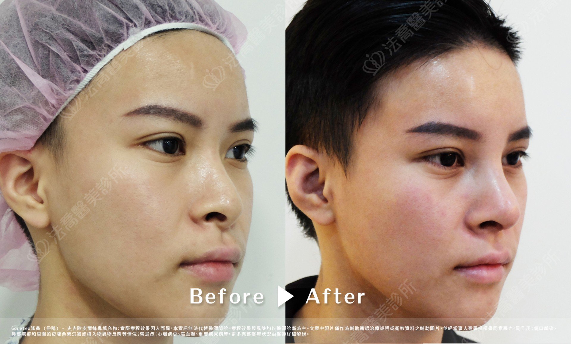 ▲Goretex隆鼻(俗稱) / 術前與術後1個月(文案中照片僅作為輔助醫師治療說明或衛教資料之輔助圖片,並經當事人簽署授權書同意曝光。)