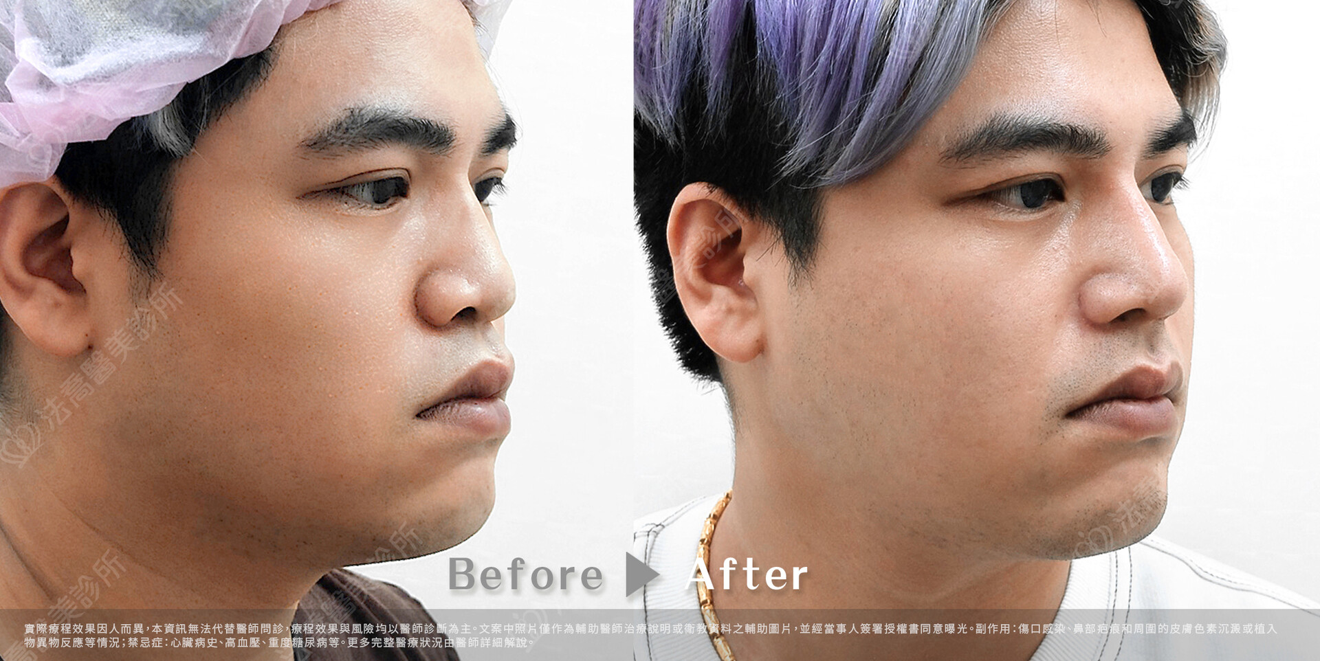 ▲自體肋骨隆鼻/縮鼻翼 術前與術後3個月(文案中照片僅作為輔助醫師治療說明或衛教資料之輔助圖片,並經當事人簽署授權書同意曝光。)
