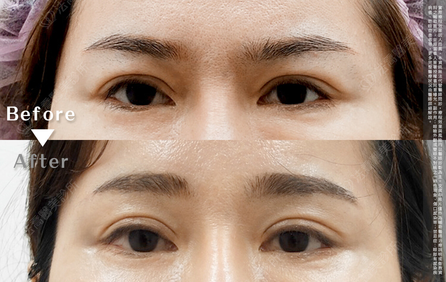 - 術後眼睛不自然 、 兩眼不對稱:術後可能因腫脹或疤痕問題,造成兩眼暫時性的不自然或不對稱,建議等 3至 6 個月,待疤痕軟化或完全消腫再做最後評估,通常雙眼不對稱需要進行二次修復的機率為 5%,人的器官多有天生性生理不對稱,加上大多是疤痕收縮造成。此為不可控制之因素,病患並無法要求雙眼 一定必須 100 %完全對稱 。