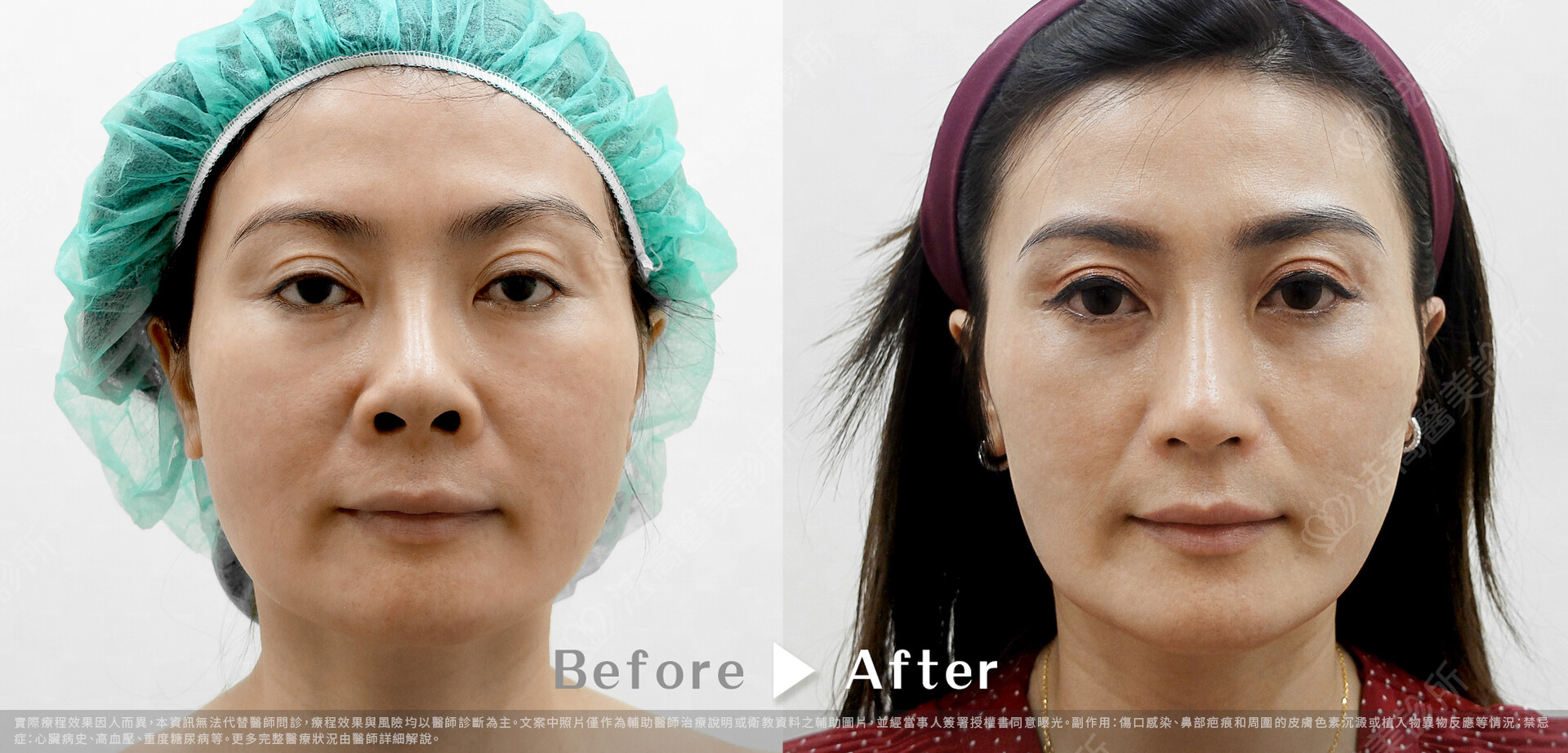 - 鼻模偏斜 : 術後 1 個月內仍可用手調整,若固定後仍可經由手術調整。