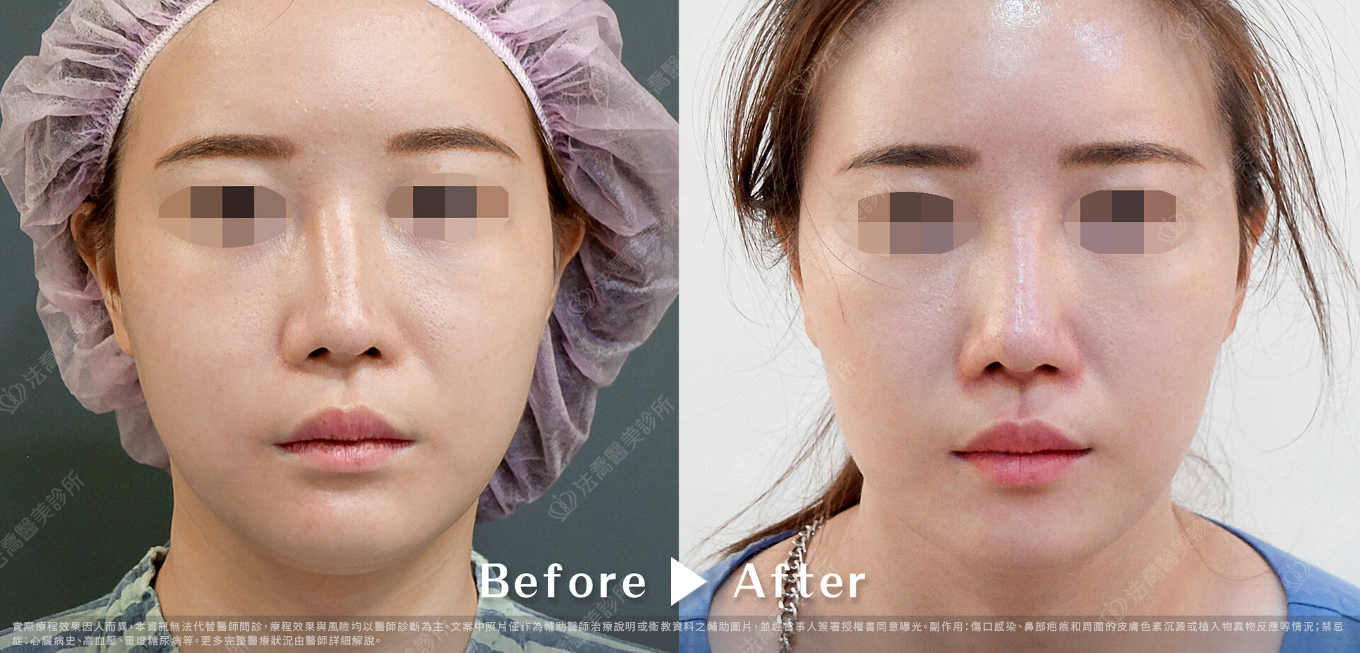 - 鼻模偏斜 : 術後 1 個月內仍可用手調整,若固定後仍可經由手術調整。