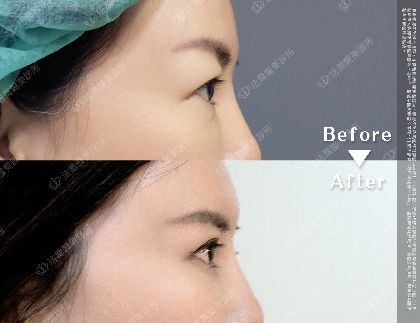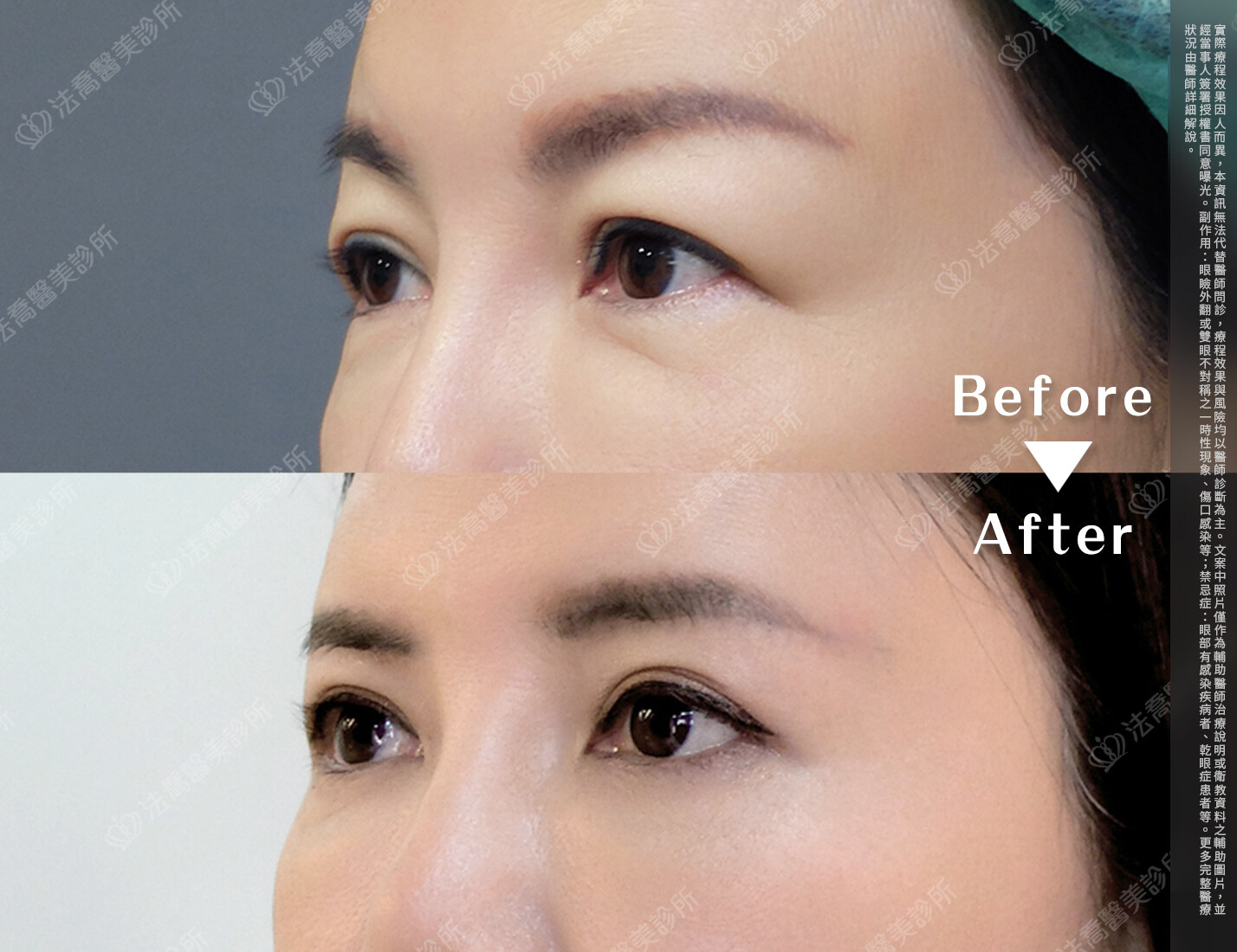- 割雙眼皮併眼瞼肌提拉術因同時處理眼皮摺痕與提眼眼肌,術後可能會出現暫時性上眼皮閉合不全之情況。