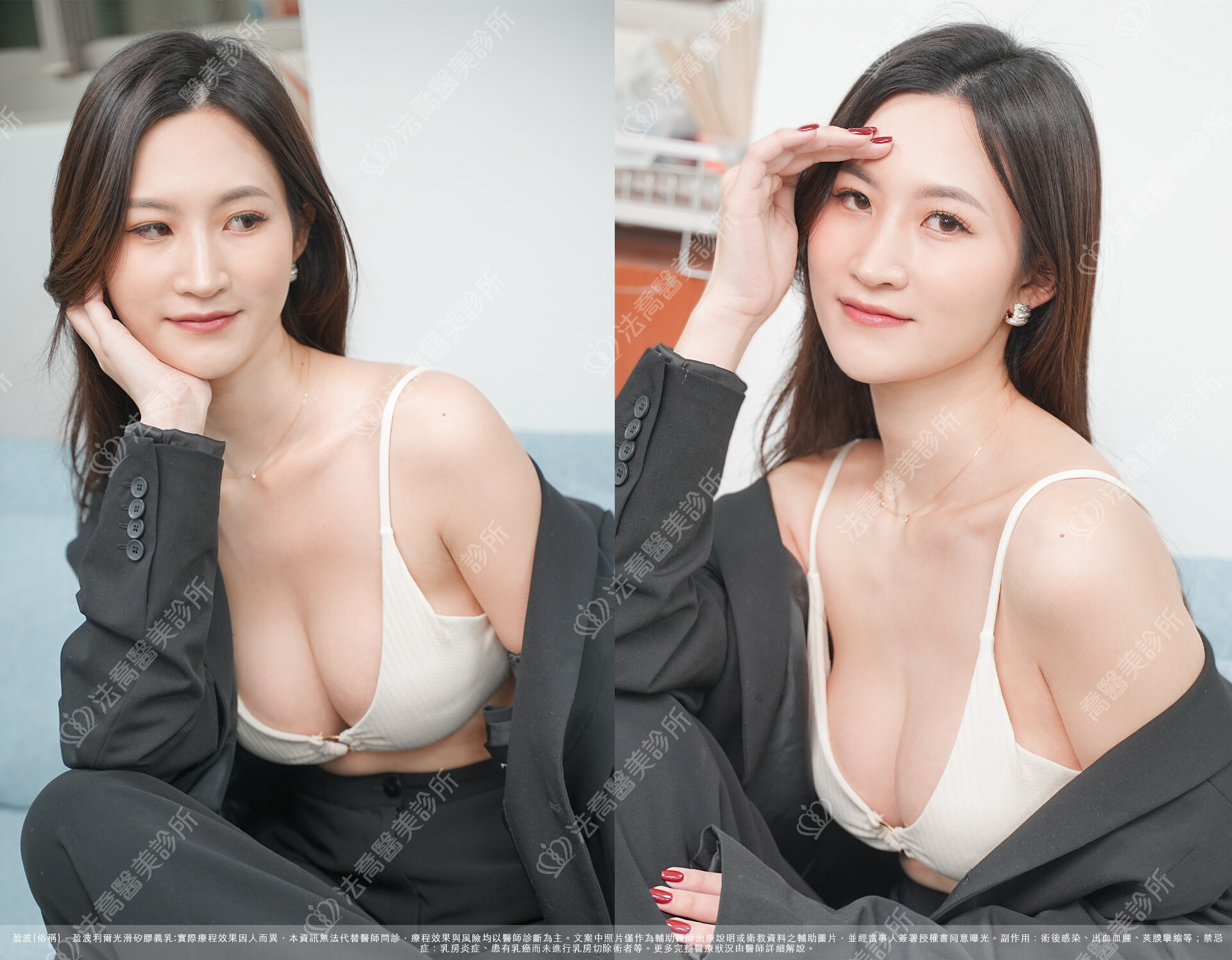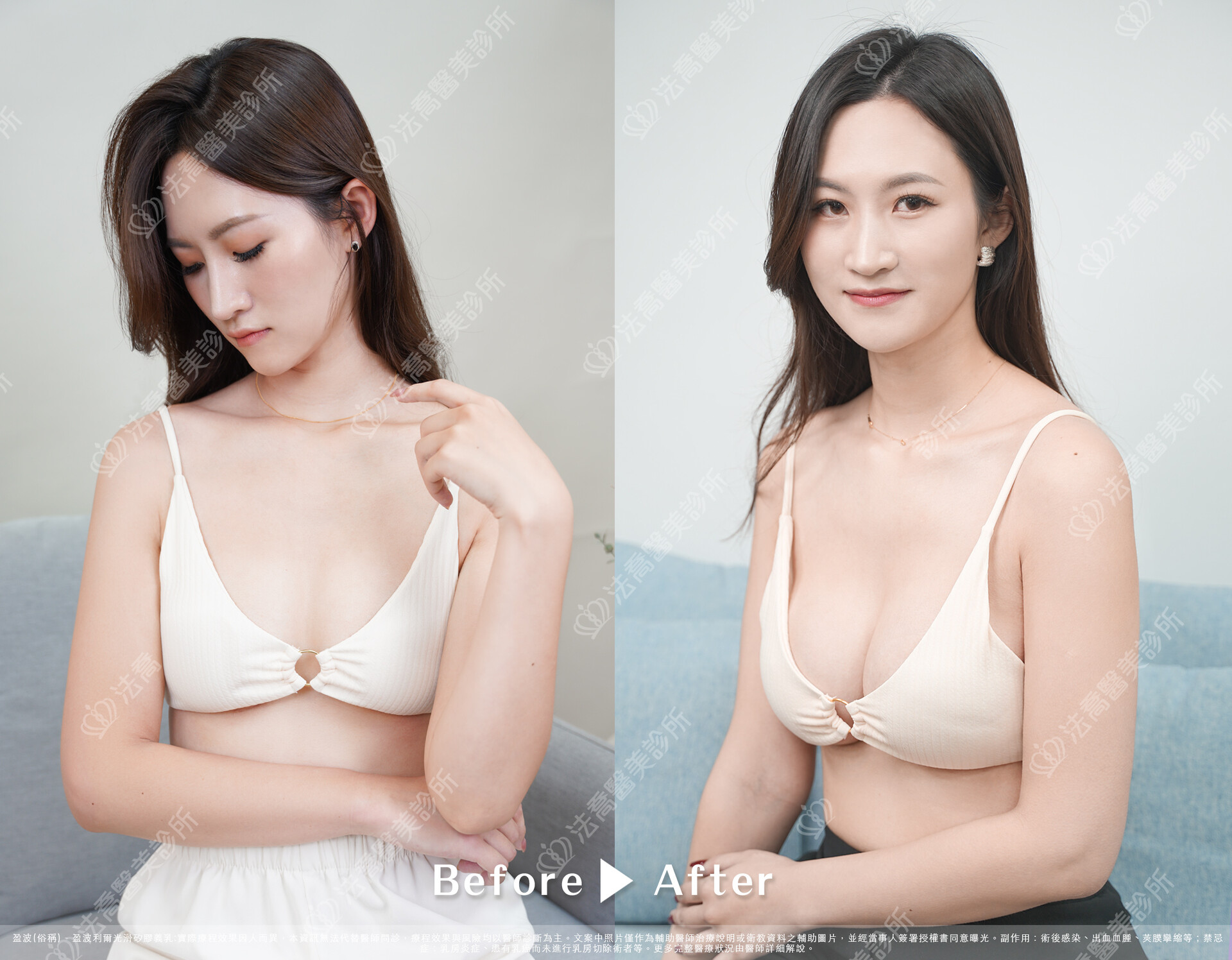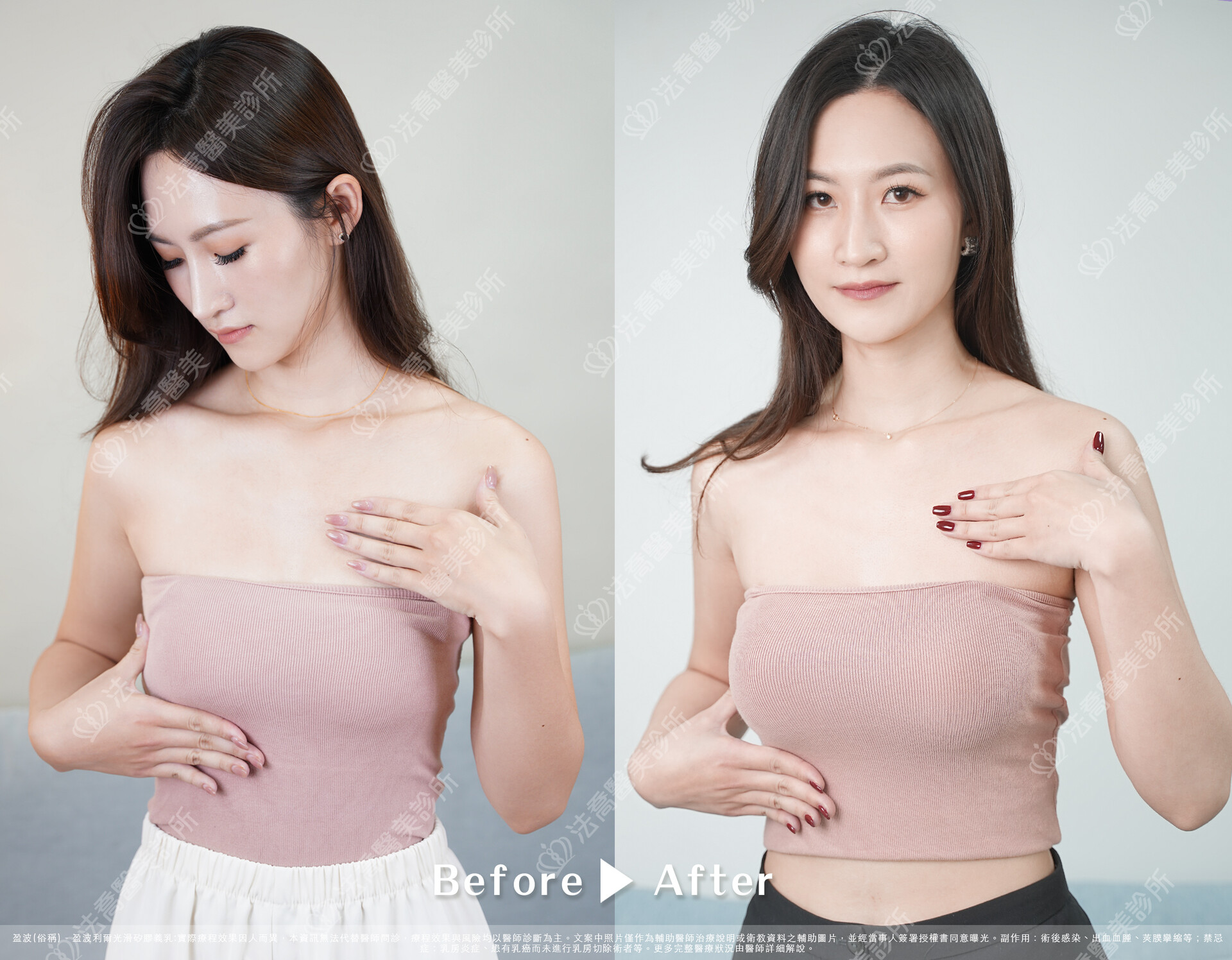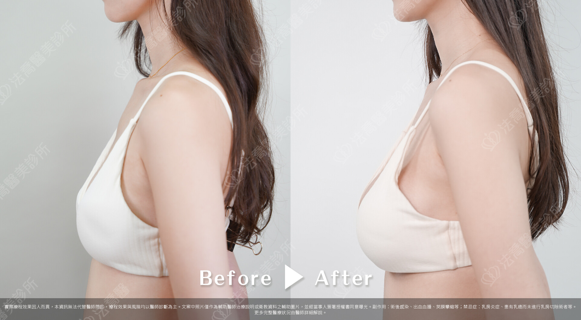 - 出血血腫、乳頭與乳房皮膚感覺異常、莢膜攣縮、兩邊不對稱、術後感染等情況。