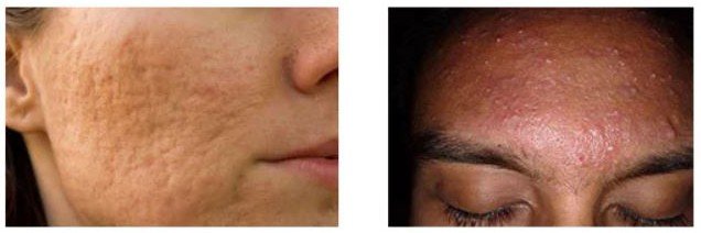 左:凹陷型疤痕 / 右:增生型疤痕