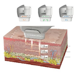 音波拉提機器探頭分為 1.5、3.0、4.5mm 三種,在深淺區域都可發揮作用,在不同深度進行客製化的治療,解決每位患者的困擾。並配有專利的即時成像系統,讓醫師能夠在治療過程中,透過超音波影像,監控治療深度,確保療程安全、精準、且有效!