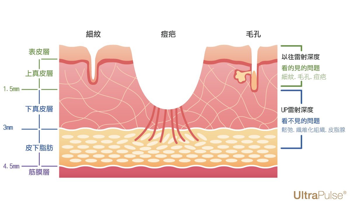因痘痘發炎嚴重,傷至真皮層的膠原蛋白,導致萎縮而形成下陷型的痘疤,其實凹陷型痘疤是目前醫學上較難改善的一種類型,因為痘疤萎縮狀況複雜,基本上不可能單靠一種雷射就可以有大幅度的改善,建議採複合式療程治療,先用皮秒雷射做全臉打底,讓膚質從肌底變健康,再施打M22彩衝光(俗稱)讓臉部退紅,最後使用UP雷射(俗稱)“洛明尼斯”二氧化碳雷射系統局部施打痘疤,利用脈衝速度極快並治療深層的特性來治療,不會過度破壞痘疤周邊健康的組織,實際還是須先給醫生評估喔。