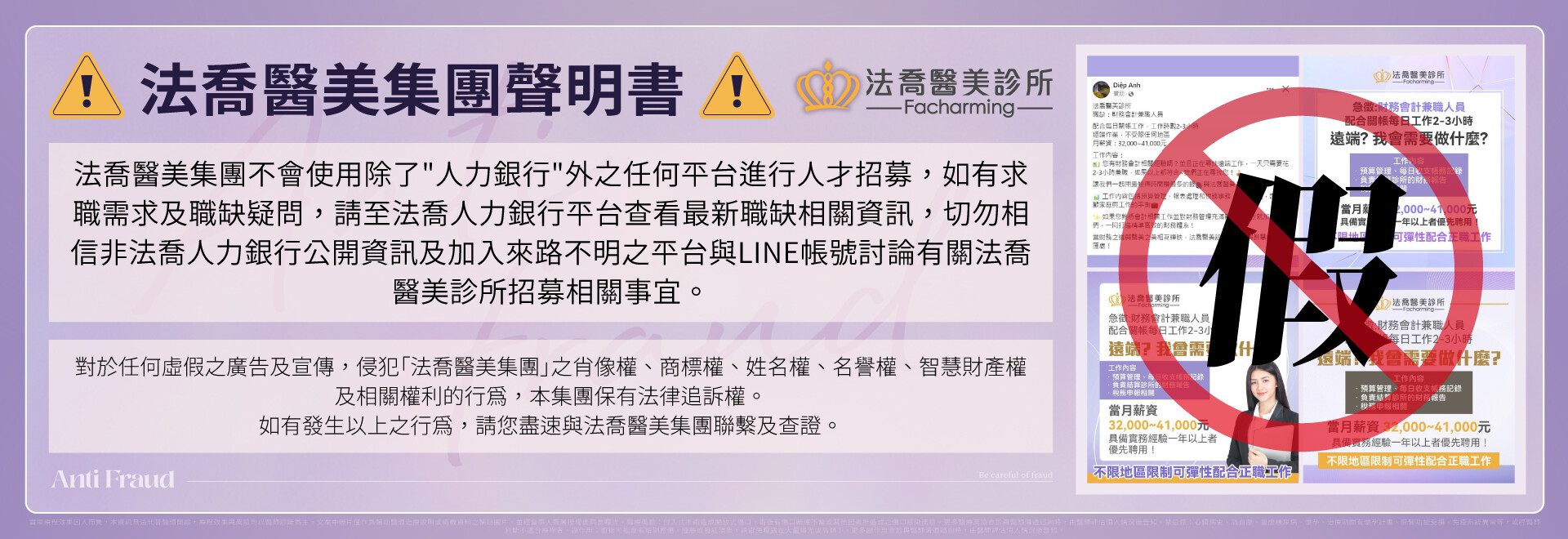 ⚠️法喬醫美集團反詐騙聲明書⚠️