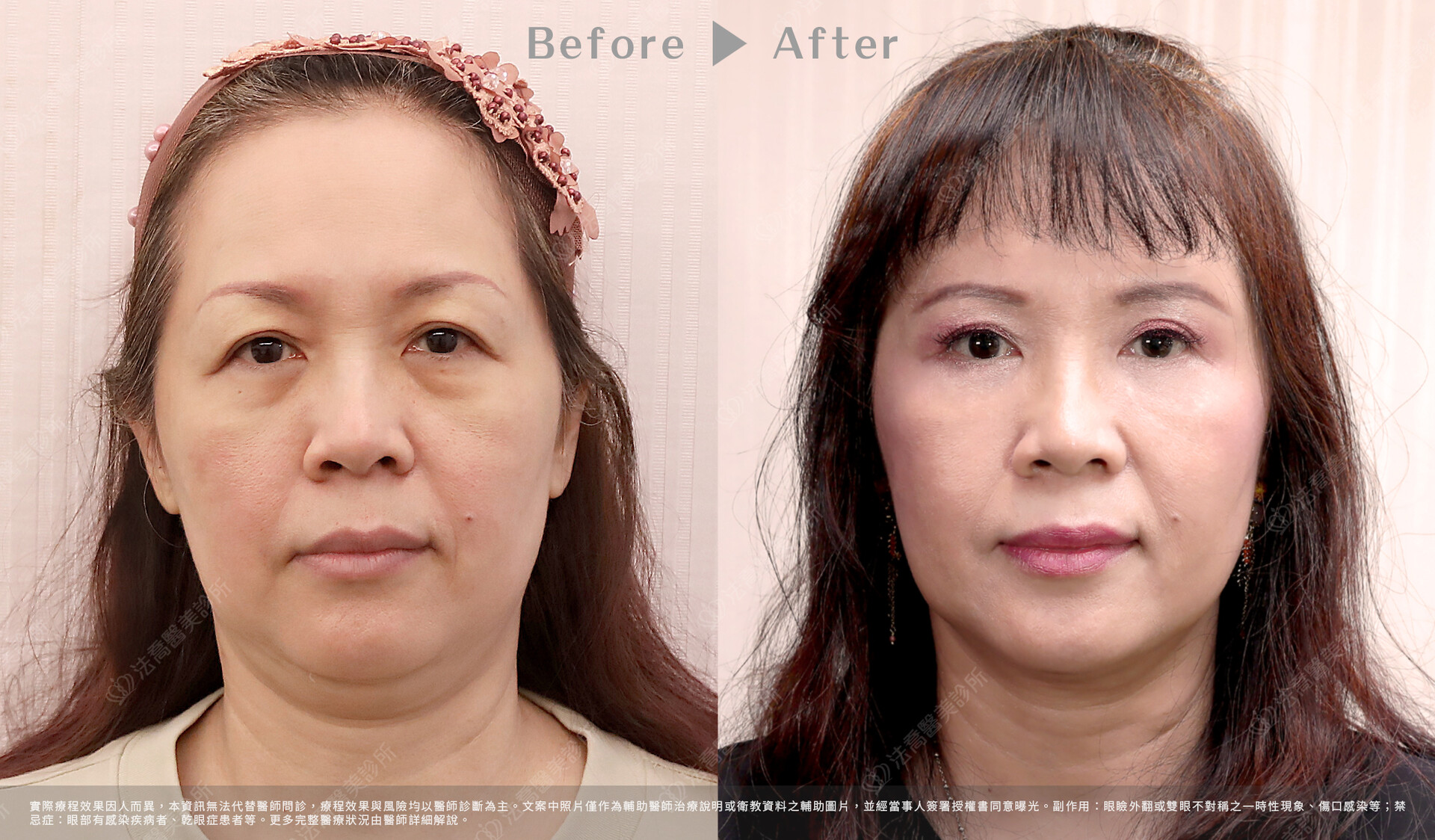 - 將原本的眼袋脂肪移位或移除,效果明顯。