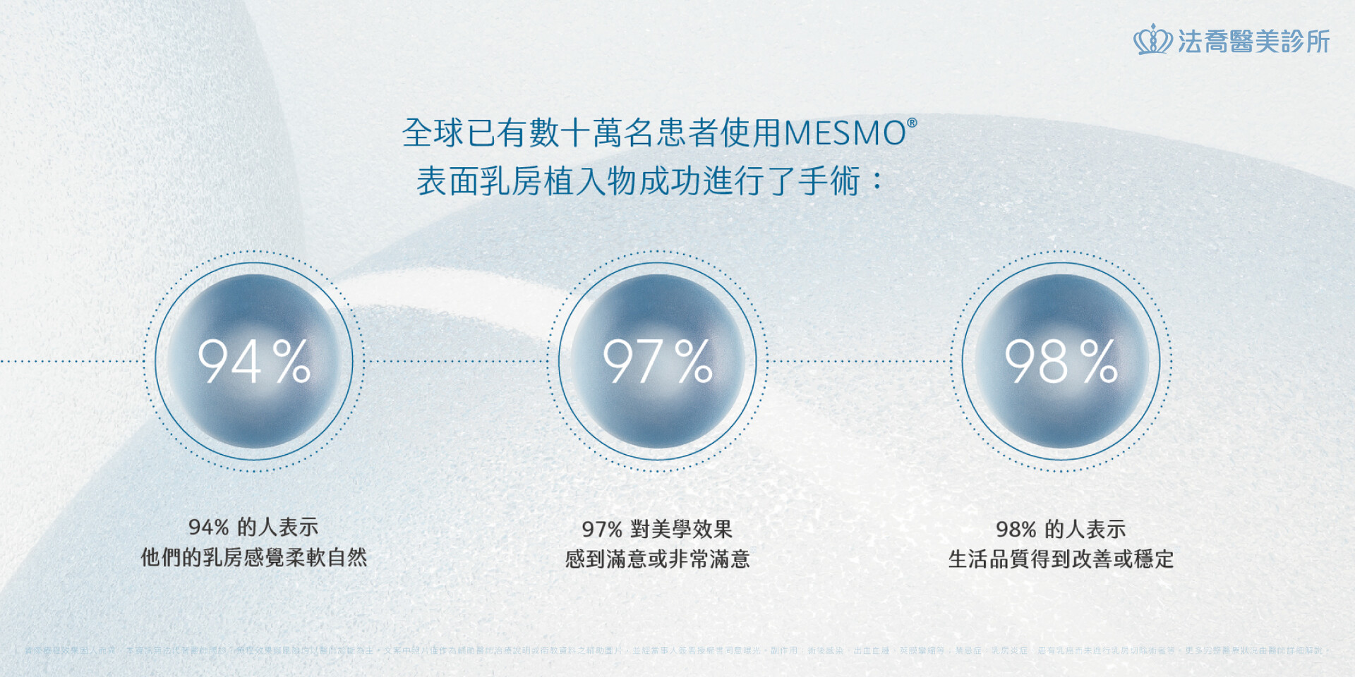 * 根據國際公認 ISO標準 14607:2018 MESMO® 植入物被歸類為微紋理符合安全、合規的國際商業化標準。