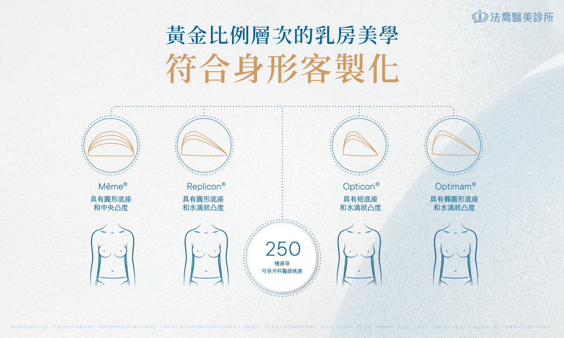 繆思女神波(俗稱) - 波立提乳房植入物;女王波(俗稱) - 曼陀矽膠填充義乳;魔滴Motiva(俗稱) - 波力媚愛格爾乳房植入物;珍珠波(俗稱) - 珍珠光滑矽膠義乳;盈波(俗稱) - 盈波利爾光滑矽膠義乳;Sebbin香榭柔滴(俗稱) - 賽彬矽膠充填之乳房植入物