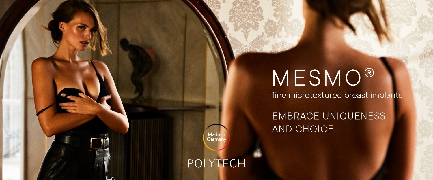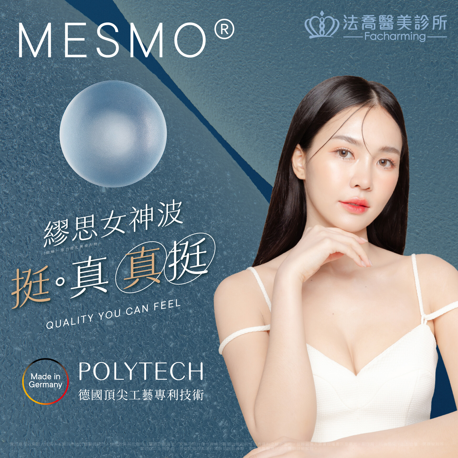 MESMO繆思女神波(俗稱)-波力提乳房植入物是由德國38年經驗矽膠植入物品牌 — POLYTECH所生產的填充果凍矽膠假體,已經銷售至80個國家以上,目前已累積銷售超過300萬個植入物,並提供超過2,000種乳房植入物款式,繆思女神波經過黃金比例設計與13道嚴謹檢驗程序,一顆假體需耗時4周才能完成,皆須經過3次人工品管檢查才能出廠。